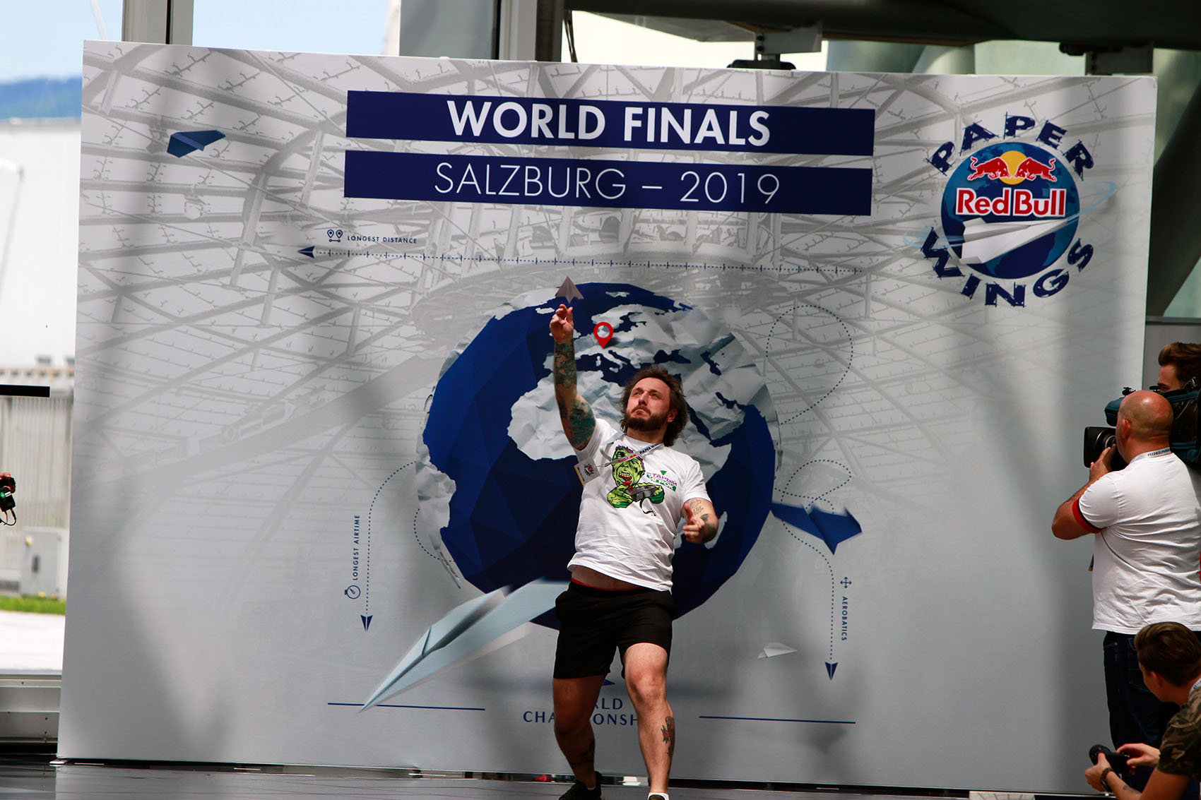 In der Kategorie Flugdauer stockt den Zuschauern regelmäßig der Atem, wenn die Papierflieger für einen Moment lang in der gewölbten Decke des Hangar-7 zu stehen scheinen. Der Sport- und Geographie-Student Daniel Keil, 26 Jahre, hat ein Design und eine besondere Wurftechnik entwickelt, mit der er hofft, dass sein Flieger länger als alle anderen gegen die Schwerkraft ankämpfen kann. Auch hier dürfen die Piloten nur ein Blatt A4-Papier verwenden und haben nur zwei Versuche. Wie bei allen Kategorien wird für den Wettkampf sogar die Lüftungsanlage des Gebäudes vorübergehend abgeschaltet, damit auch nicht das kleinste Lüftchen die Ergebnisse beeinflusst. Mit der längsten je geflogenen österreichischen Zeit von 8,9 Sekunden holte sich Keil im nationalen Finale den Titel. Der Bad Ischler behielt in den letzten Runden die Nerven, justierte den Flieger noch einmal nach und sicherte sich so den Österreich-Titel in dieser Kategorie. „Ich habe in der Pause noch einmal komplett umgebaut, und ich glaube, im Endeffekt war es aber dann die Technik, die ausschlaggebend war. Jetzt freue ich mich extrem, Österreich beim World Final vertreten zu dürfen“, freut sich der 26-jährige auf das große Final im Hangar-7.