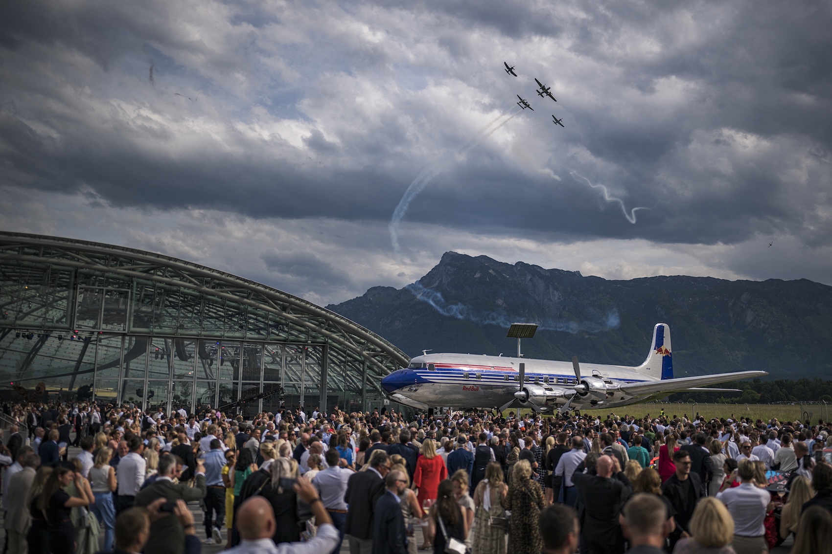 Das Imperium des Getränke-Konzerns ließ es sprichwörtlich richtig krachen. Dafür sorgte im Freien die Motorsport- und Fliegerflotte des Energy-Drink-Giganten. Indoor sorgte unter anderem die Kulinarik-Abteilung des Hangar-7 für Weltklasse-Gaumenfreude.