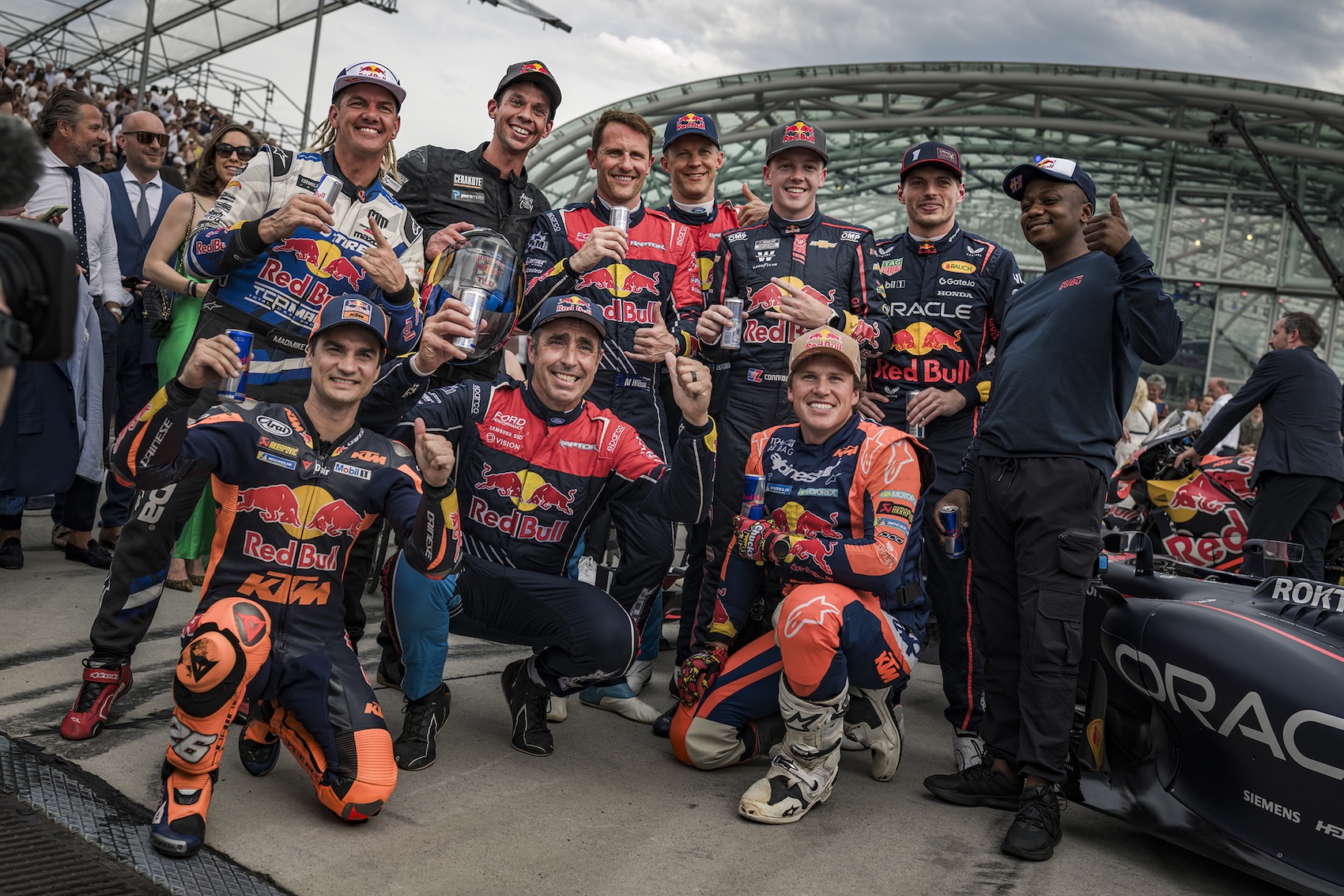 Motorsportgrößen wie Formel-1-Weltmeister Max Verstappen, MotoGP-Legende Dani Pedrosa, Dakar-Star Daniel Sanders oder NASCAR-Profi Connor Zilisch sorgten für Adrenalin pur und präsentierten Legenden auf zwei oder vier Reifen wie den WRC M-Sport Puma, den Dakar Ford Raptor T1+ und das KTM MotoGP Bike.