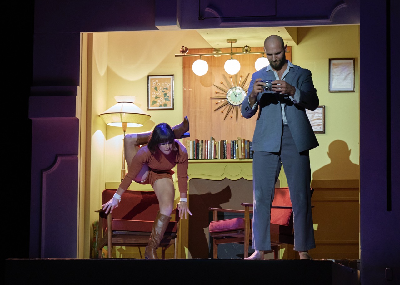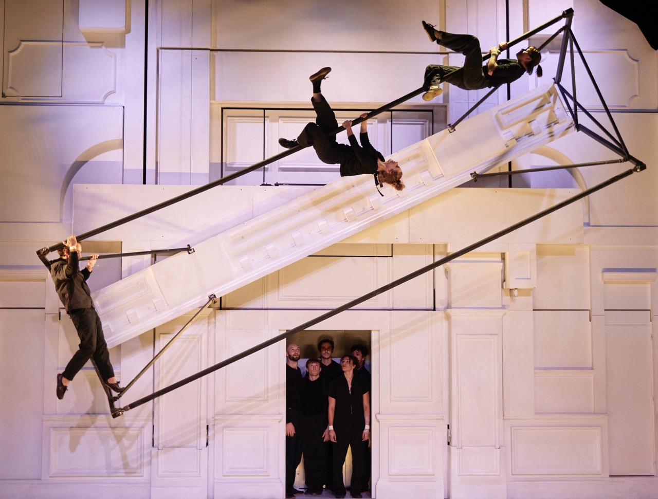 „Entre Chiens et Louves“ (Zwischen Hunden und Wölfen) enthüllt die Geschichten dreier Menschen, die in unterschiedlichen Epochen leben: 1870, 1960 und 2022. Der Hauptdarsteller Alex, aus dem Jahr 2022, taucht immer wieder in die Welten der Anderen ein und die Grenzen zwischen Realität und und Fiktion verschwimmen. Zu Beginn öffnen sich in der beeindruckenden Bühnenkulisse drei Wohnräume, aus den unterschiedlichen Epochen.
